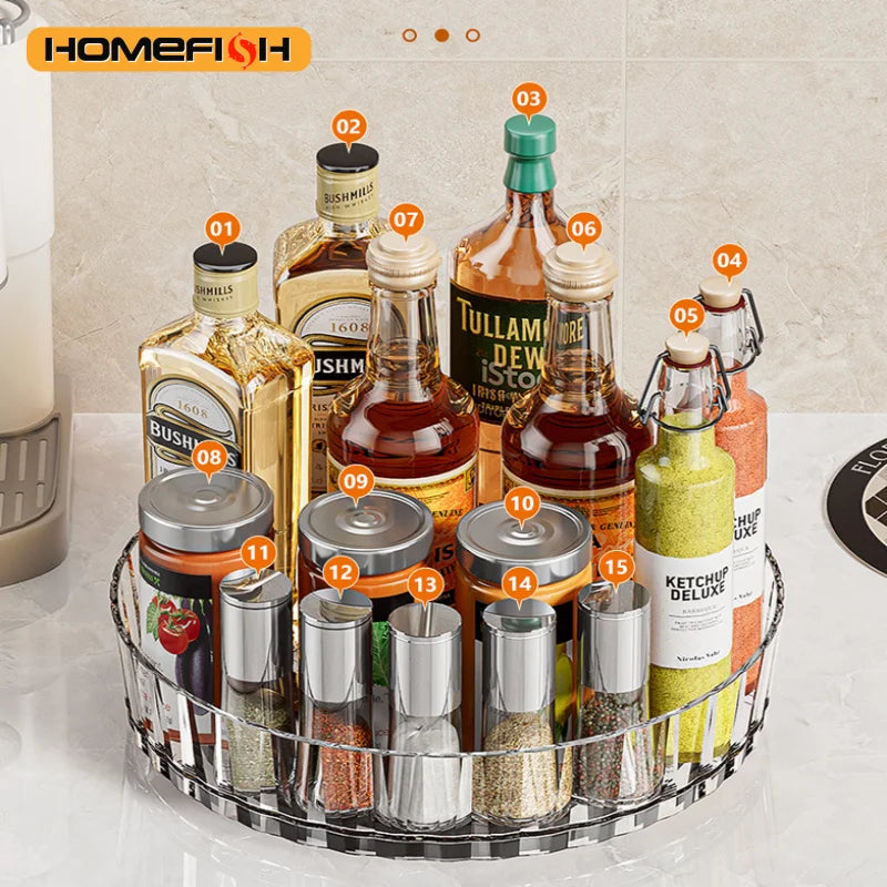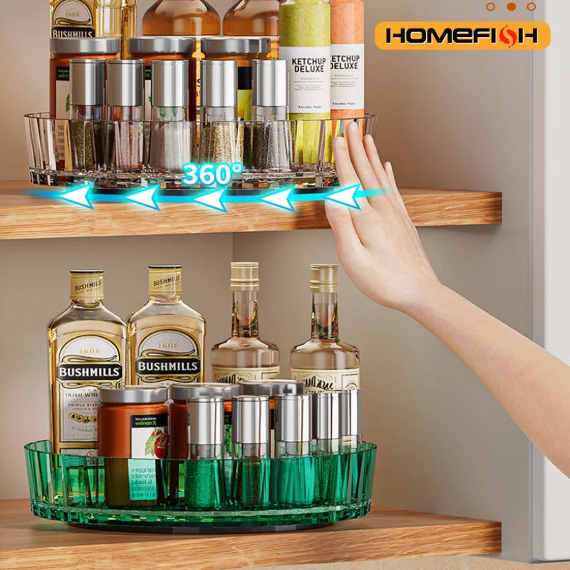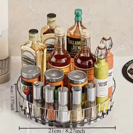 Designed with a smooth 360° rotating base, this space-saving organiser lets you grab what you need quickly — whether you're cooking, cleaning, or getting ready for the day.